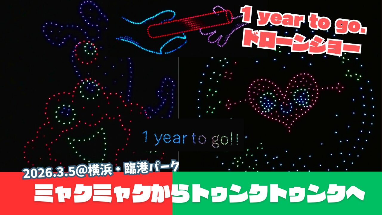 横浜・みなとみらいの夜空を舞台に開催された、特別ドローンショー「地球と。咲きに行こう。1 year to go. GREEN×EXPO 2027 ドローンショー」へ行ってきました!