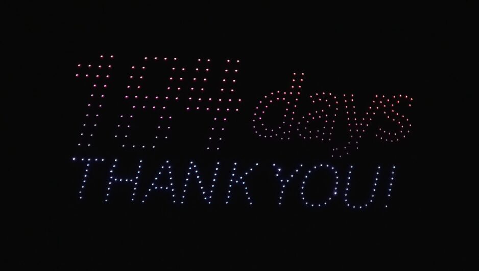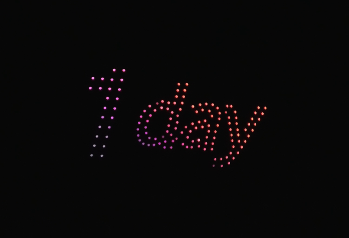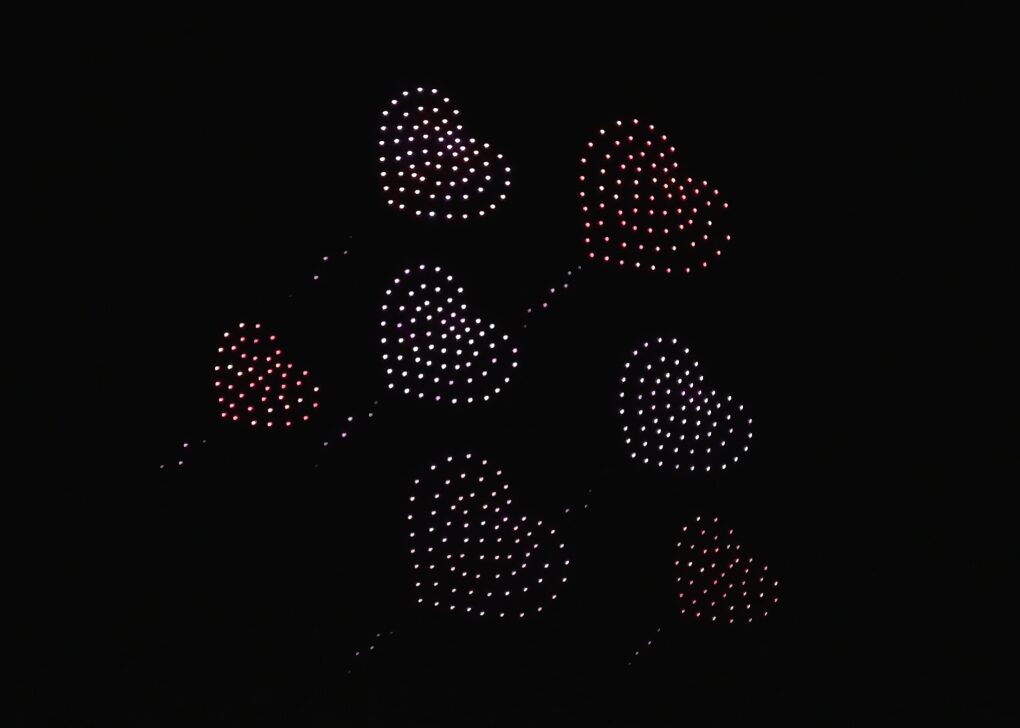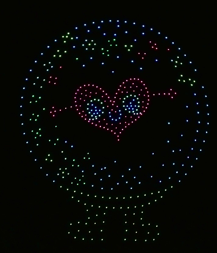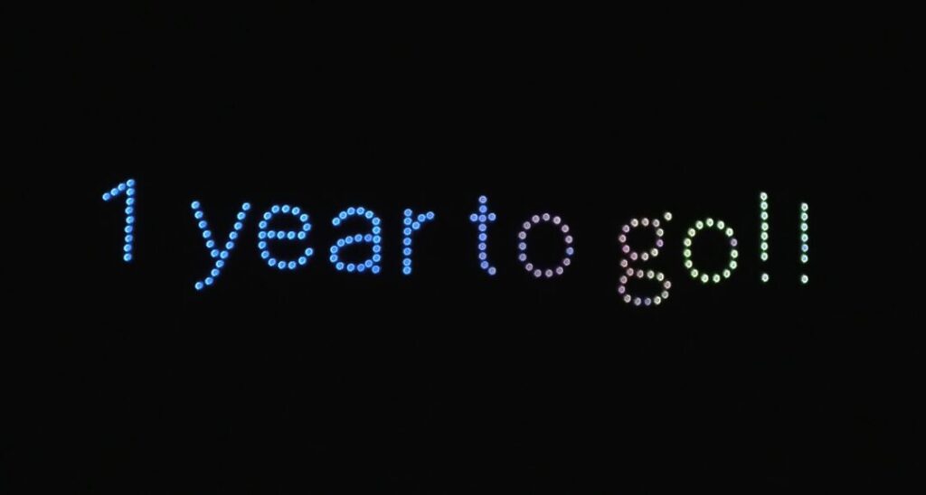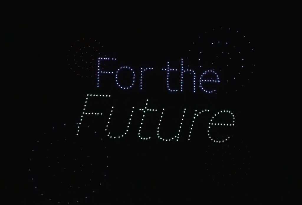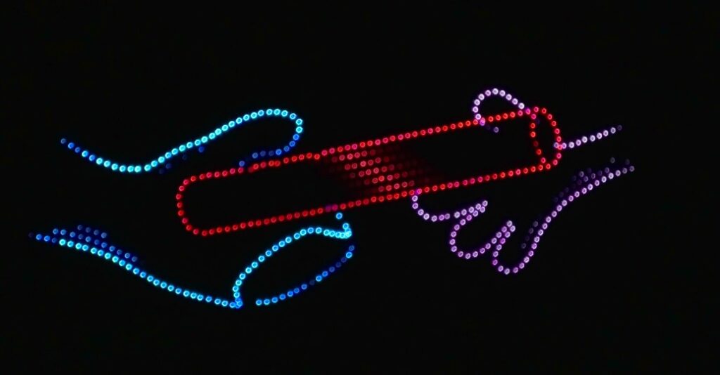 開始予定は19:00でしたが、実際のスタートは19:15頃。約15分間にわたってドローンショーが行われました。