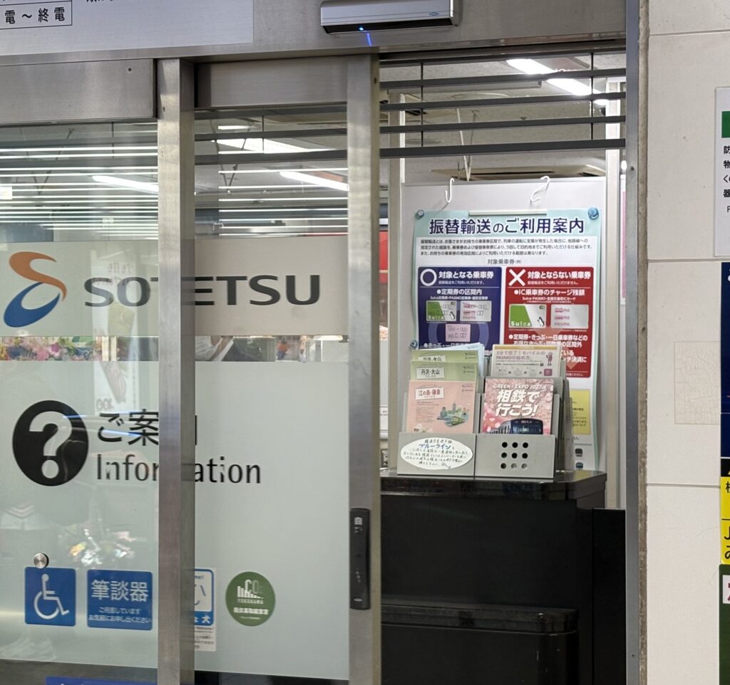 相鉄線横浜駅の案内所では、チラシ「相鉄で行こう!」が配布中です。来年の横浜園芸博へのアクセスとしての相鉄鉄道と、village出展をする「SOTETSU PARK(そうてつぱーく)」について紹介されています。
