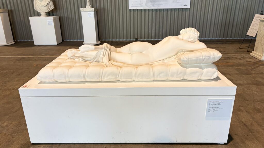室内入ったところにも展示があり、フランス館正面にあった「ブシュケを持ち上げるメルクリウス(ブシュケを誘拐するメルクリウス)」の複製彫刻もありました。