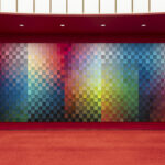 本展示では、現代美術作家 川人綾 氏がデザイン・監修を手がけた大型タペストリー《CUT: C/U/T_CC-CM_I》 が公開されています。