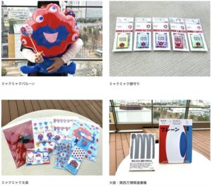 | ラインナップ | プリントクッキー、バルーン、クリアファイル・付箋等文具、御守り、巾着など ※商品によっては品切れとなる場合がございます。あらかじめご了承ください。 |