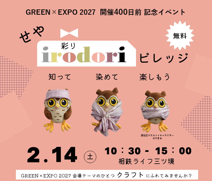 瀬谷区役所、横浜国際園芸博覧会瀬谷区推進協議会、相鉄グループは、開催400日前記念イベント「せや・irodori(彩り)ビレッジ」を、2026年2月14日(土)に開催します。