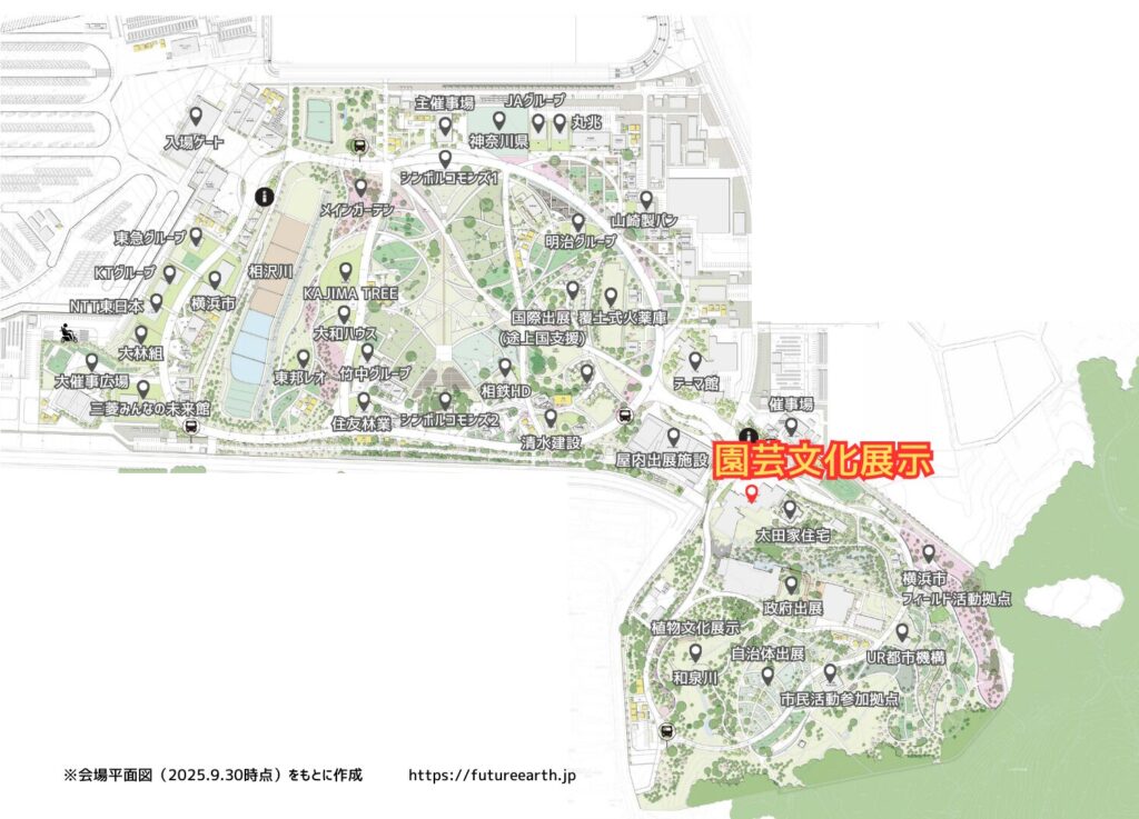 江戸時代、日本の園芸文化は世界最高水準まで発達しました。主要展示の一つである「園芸文化展示(Horticultural Pavilion)」では、そんな日本独自の園芸文化の精髄を、展示・再現・季節演出を通じて体感できます。徳川将軍から庶民までが熱中した育種文化や季節感のある植物表現を、現代の技術と実物展示で味わえるパビリオンです。