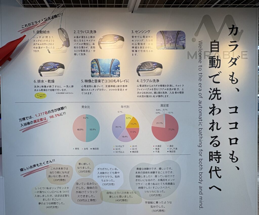 「ミライ人間洗濯機」は、1970年の大阪万博で“未来の夢”として描かれた「人間洗濯機」を、現代のテクノロジーで進化させた装置です。開発を手がけたのは、ファインバブル技術で知られる株式会社サイエンス。