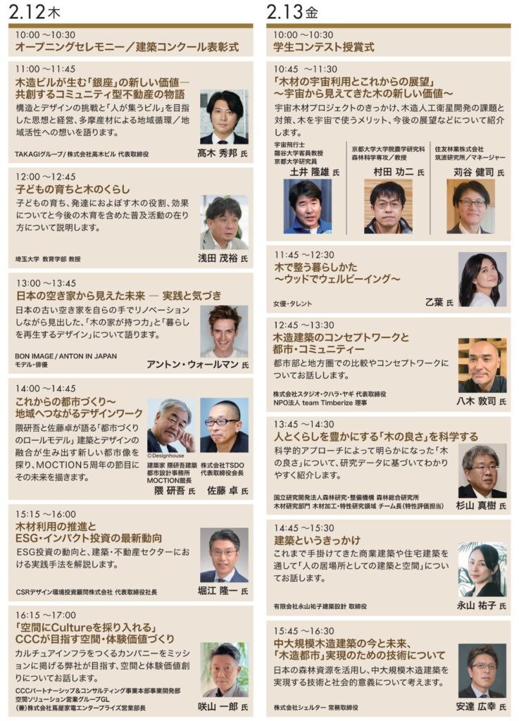 「WOODコレクション(モクコレ)2026」メインステージ 全プログラム表