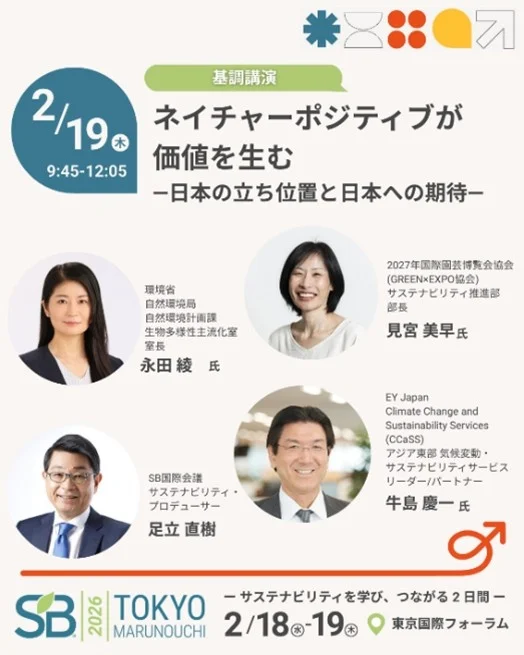 TAG 企業サステナビリティ ネイチャーポジティブが価値を生む ― 日本の立ち位置と日本への期待 ―|第10回サステナブル・ブランド国際会議2026 2026.02.05 mirai Future Earth