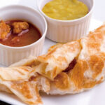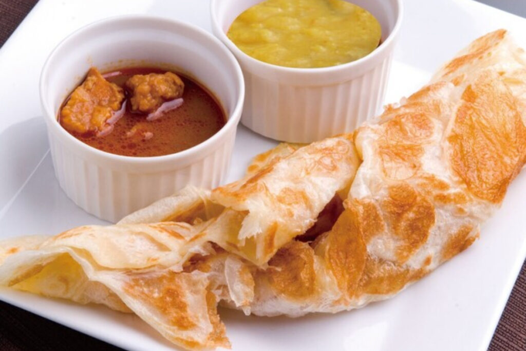 「ロティーチャナイ」は、マレーシアの定番軽食。外はパリッと、中はモチモチの食感が特徴の薄焼きパンで、カレーとの相性が抜群です。