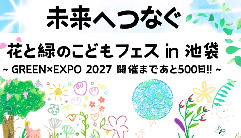 2027年に横浜市で開催される国際園芸博覧会「GREEN×EXPO 2027」(通称:横浜花博)。その開幕500日前を迎えるにあたり、農林水産省は「未来へつなぐ花と緑のこどもフェス in 池袋」を開催します。子どもから大人まで楽しめる体験を通じて、花や緑の魅力を知り、横浜花博への期待を高められるイベントです。