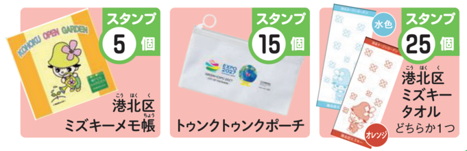 中でも注目は、スタンプ15個で手に入るオリジナル「トゥンクトゥンクポーチ」。横浜園芸博ファンには見逃せない限定アイテムとなっています。