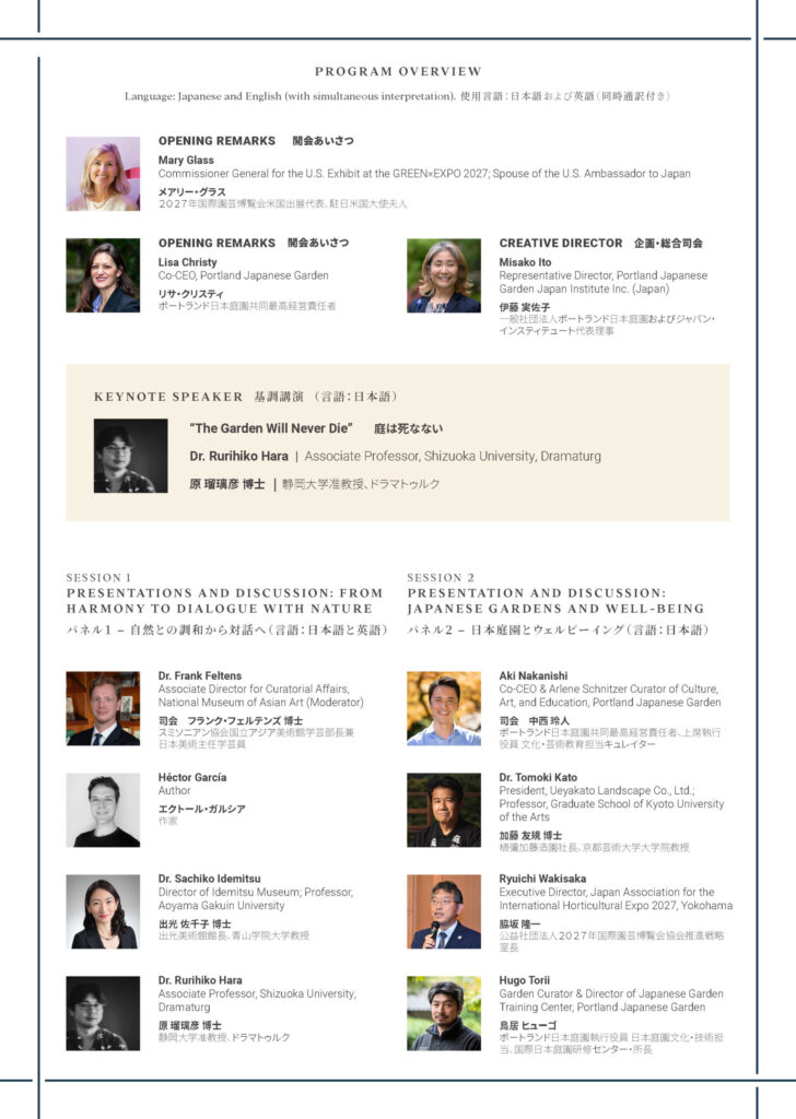 | 共催 | ポートランド日本庭園およびジャパン・インスティテュート、2027年国際園芸博覧会協会 |