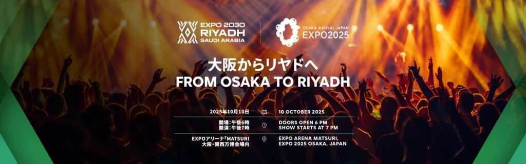 大阪・関西万博閉幕週の特別企画「大阪からリヤドへ」の一環として実施される本イベントは、次回の万博=リヤド万博への期待を高める重要な舞台です。サウジアラビアと日本が共有する普遍的な価値観を祝い、未来社会へのビジョンをともに描く特別な機会となります。