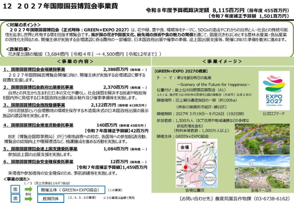 令和8年度農林水産関係予算概算決定|2027年国際園芸博覧会事業費