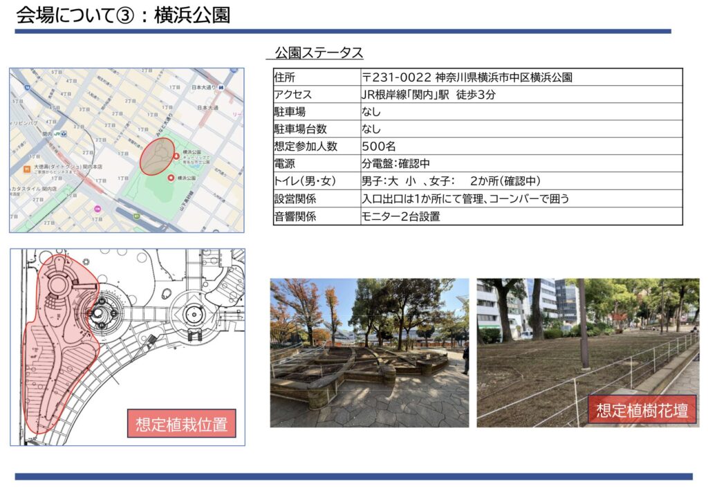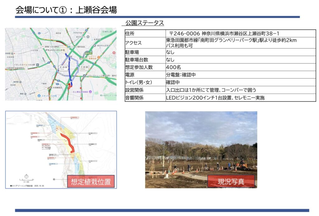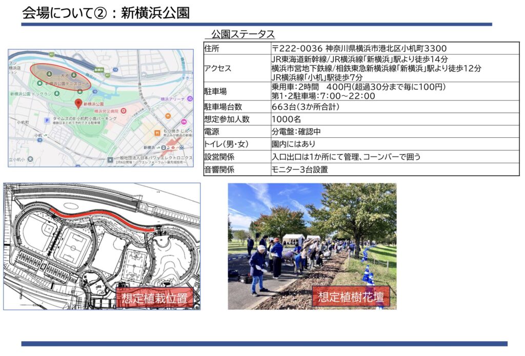<注>なお、資料に記載の住所は近隣の上瀬谷公園となっていますが、掲載されている位置図や写真は会場内を示しているため、実際の実施場所は会場内と考えられます。