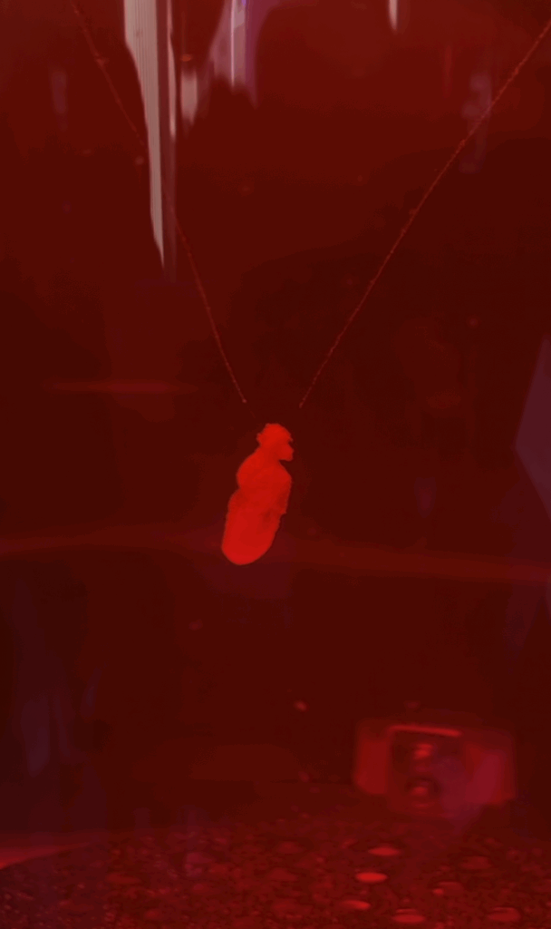 バイオマテリアルとバイオエンジニアリングの融合により、生きた細胞から作られた「心臓」が培養液の中で実際に拍動する姿を展示。