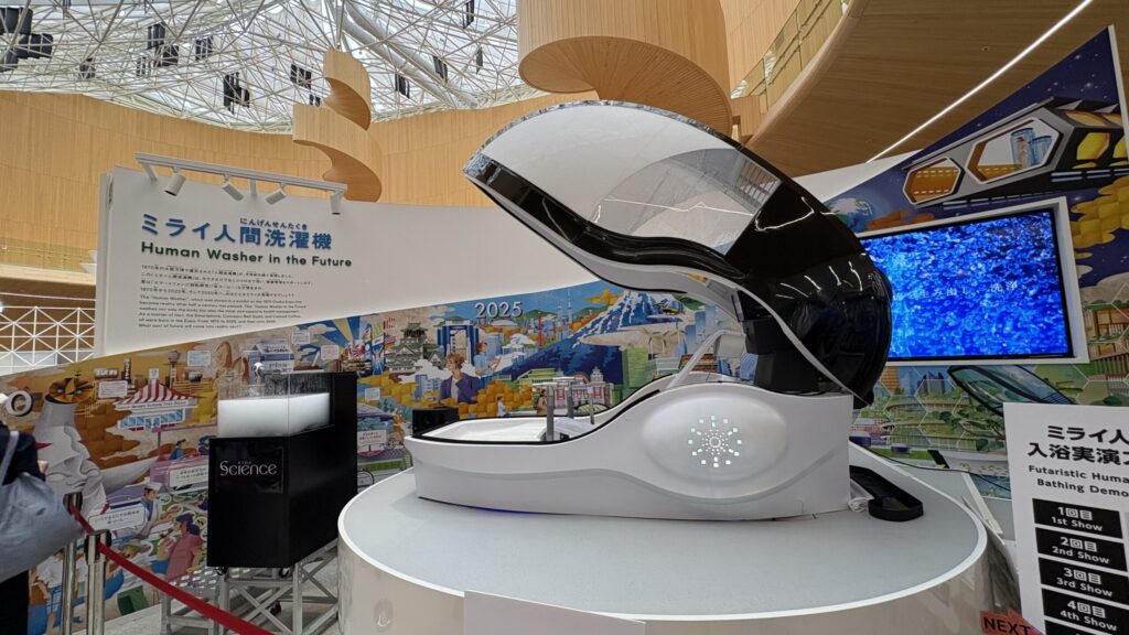 「ミライ人間洗濯機」は、1970年の大阪万博で“未来の夢”として描かれた「人間洗濯機」を、現代のテクノロジーで進化させた装置です。開発を手がけたのは、ファインバブル技術で知られる株式会社サイエンス。