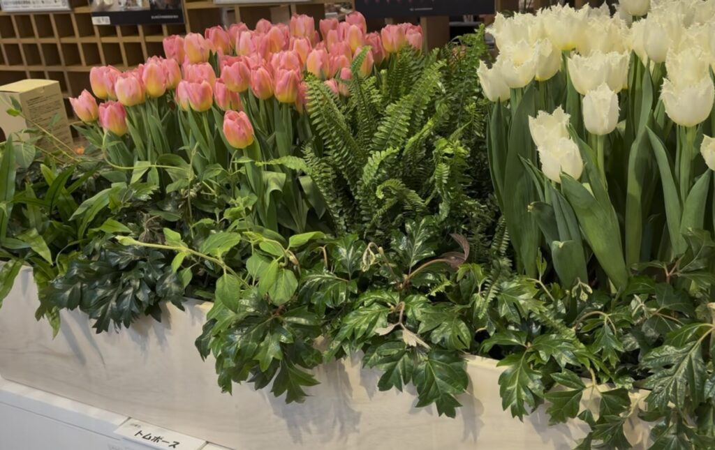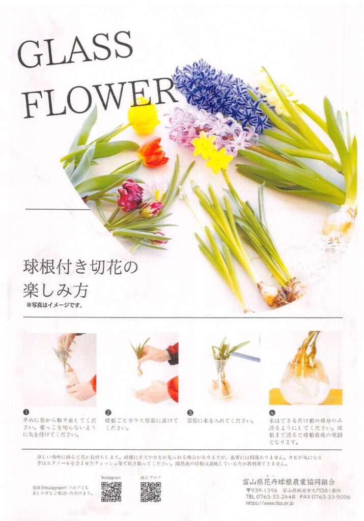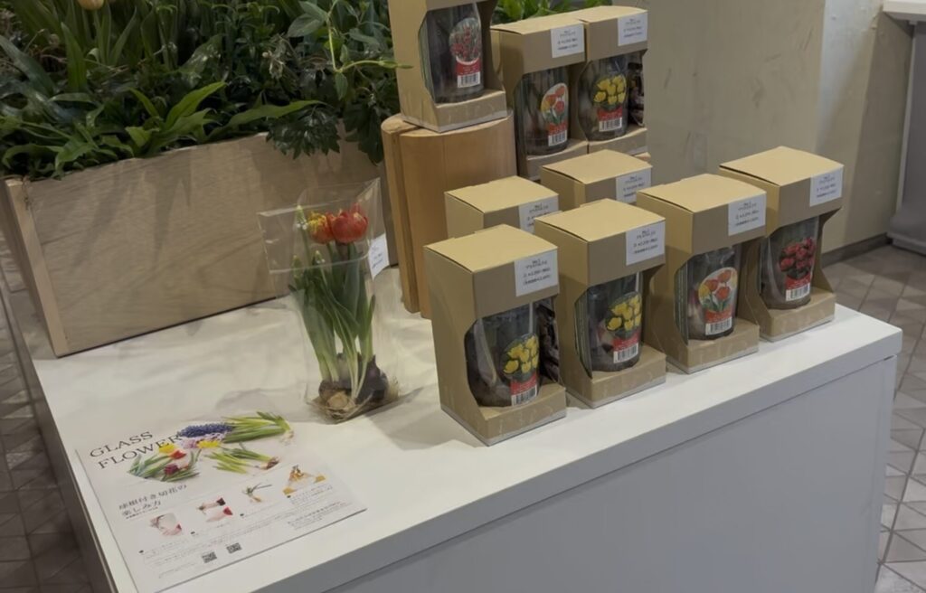 「球根付き切り花」や「お部屋で楽しむ球根栽培キット」などの販売コーナーもありました。