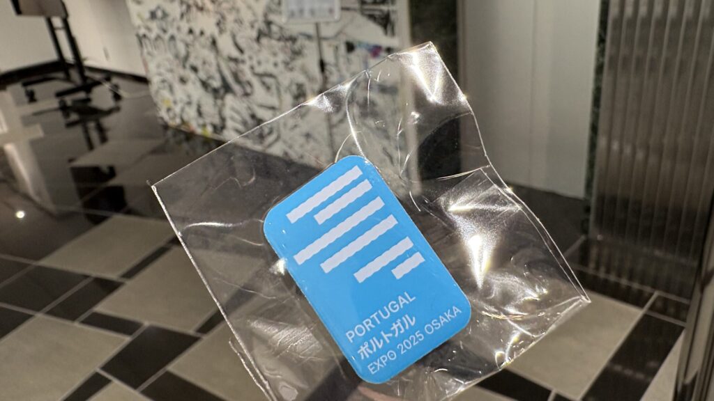 大使館を出る際に、ポルトガルパビリオンの公式ロゴマークのピンバッジをいただきました(なくなり次第終了)。
