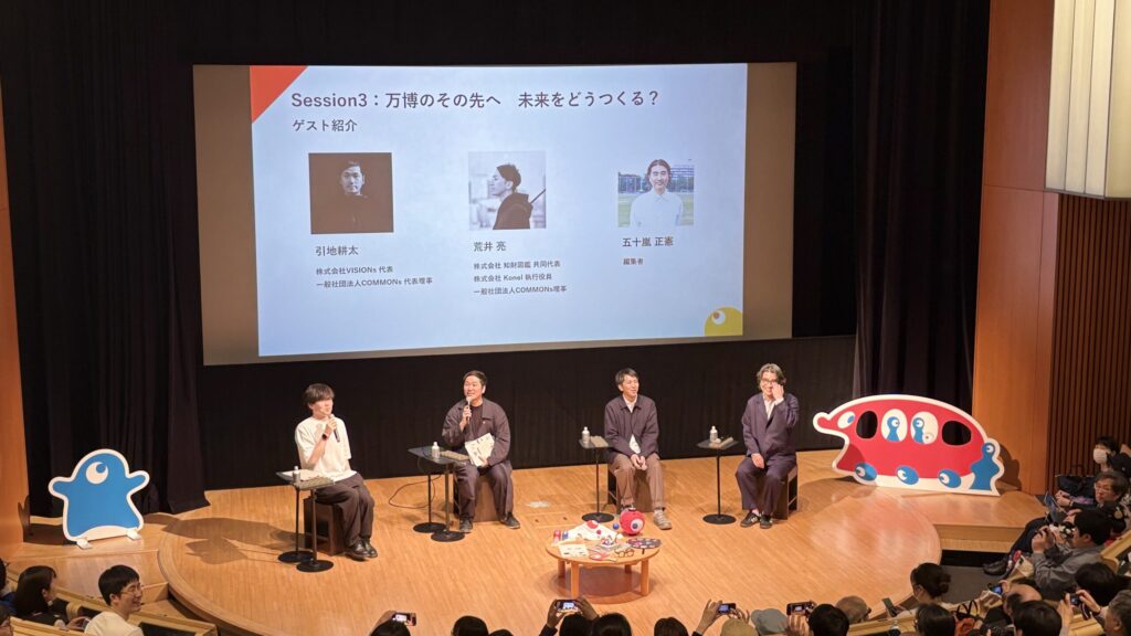 セッション1の終わりに引地耕太さんから、万博で生まれた文化や創造を、単なる記録ではなく「みんなでつくる未来のつづき」として残す参加・共創型出版プロジェクトを始動し、明日4月13日(月)から、クラウドファンディングが開始することが発表されました!