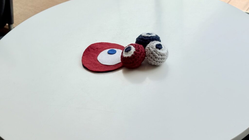 展示会場の中央には皆さんからの二次創作の「こみゃく」を展示しています。先日、万博協会はデザインシステムの中でも「ID」(通称こみゃく)の二次創作ガイドラインを発表しました。万博のようないわゆる公共プロジェクトで生まれた知財は、どのように残すことができるのでしょうか、私たち市民がどのようにサステナブルに参加できるのかを考えます。
